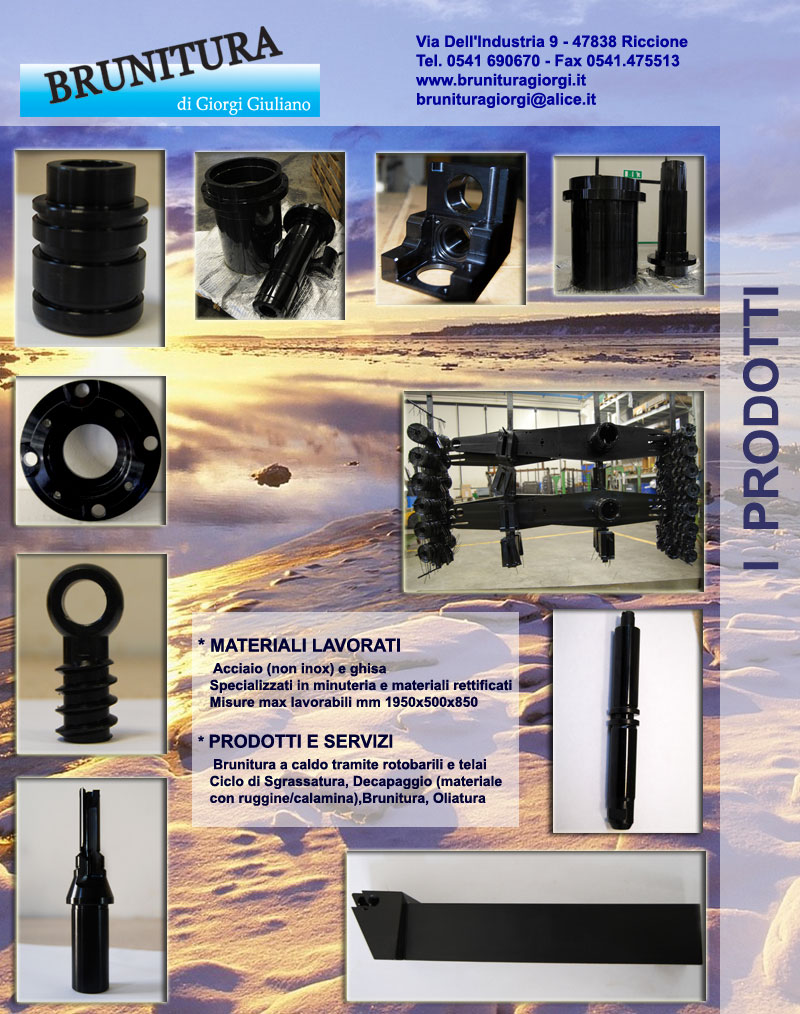 - PRODOTTI E SERVIZI: Brunitura a caldo tramite rotobarili e telai - Ciclo di Sgrassatura, Decapaggio (materiale con ruggine/calamina), Brunitura, Oliatura